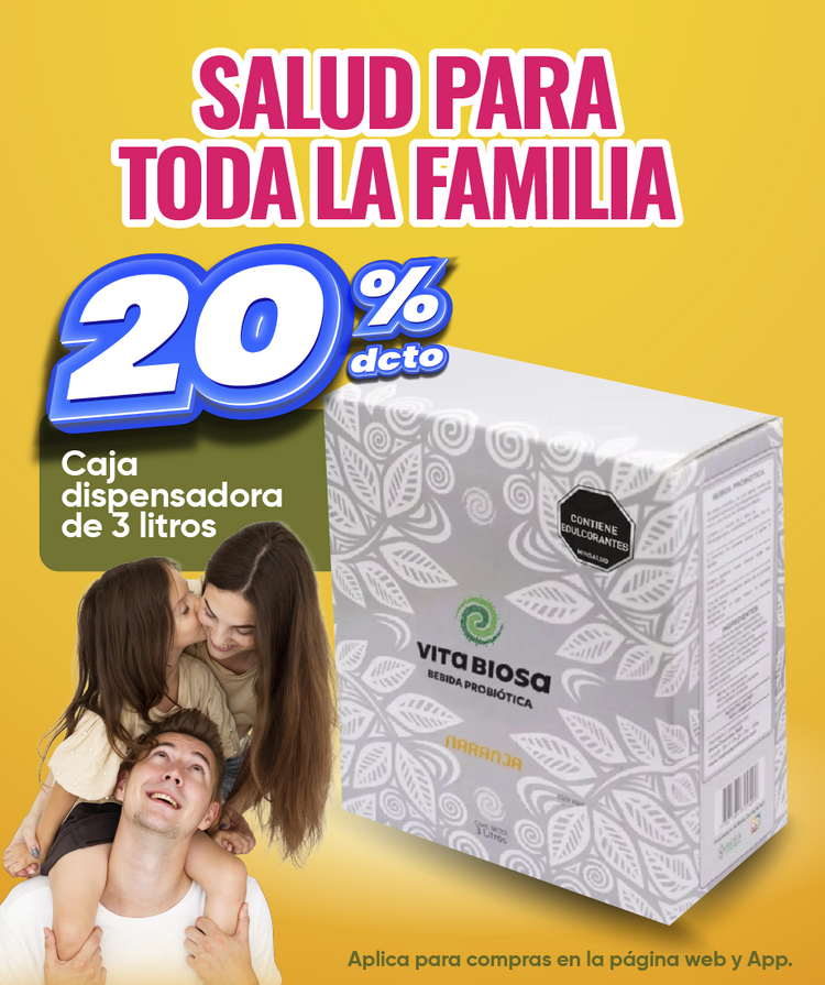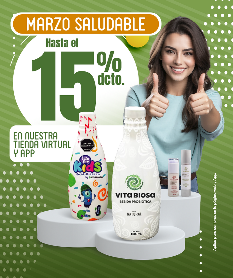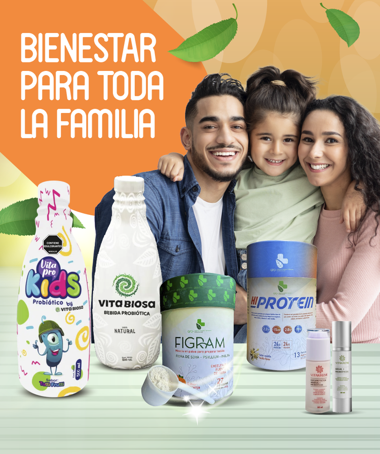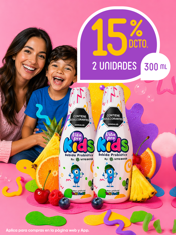 Descubre el poder de los probióticos naturales con Vita Biosa, una solución que fortalece tu sistema digestivo e inmunológico de manera efectiva. Nuestros productos, producidos en Colombia e inspirados en la biotecnología danesa, contienen microorganismos vivos que promueven la salud integral. Desde productos para el cuidado de la piel (Vita Kreme), hasta Vita Pro Kids, una bebida probiótica para niños, ofrecemos lo mejor de la ciencia para cuidar tu bienestar. Mejora tu calidad de vida con probióticos naturales hoy mismo.
